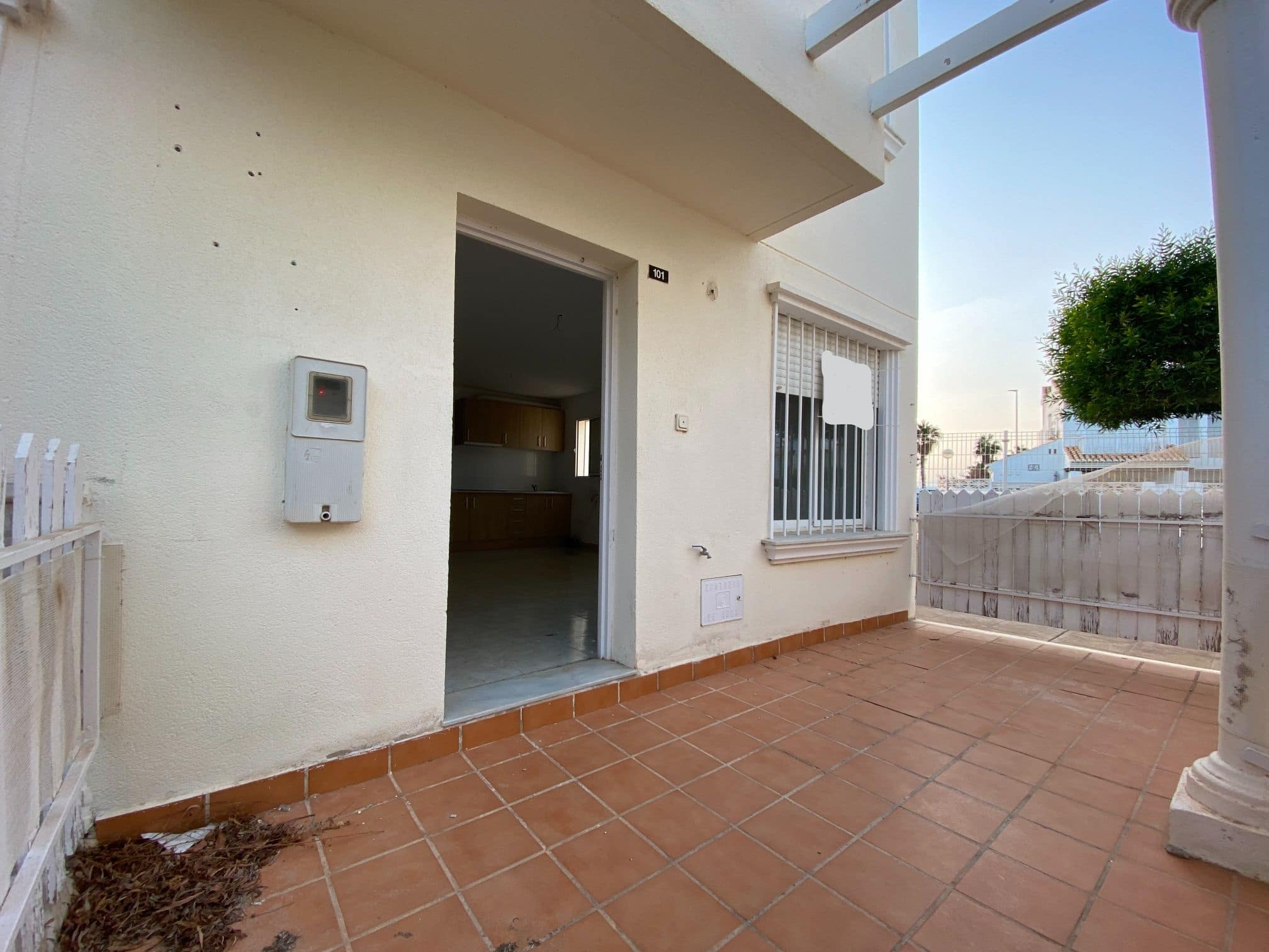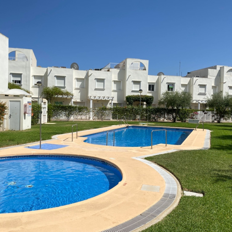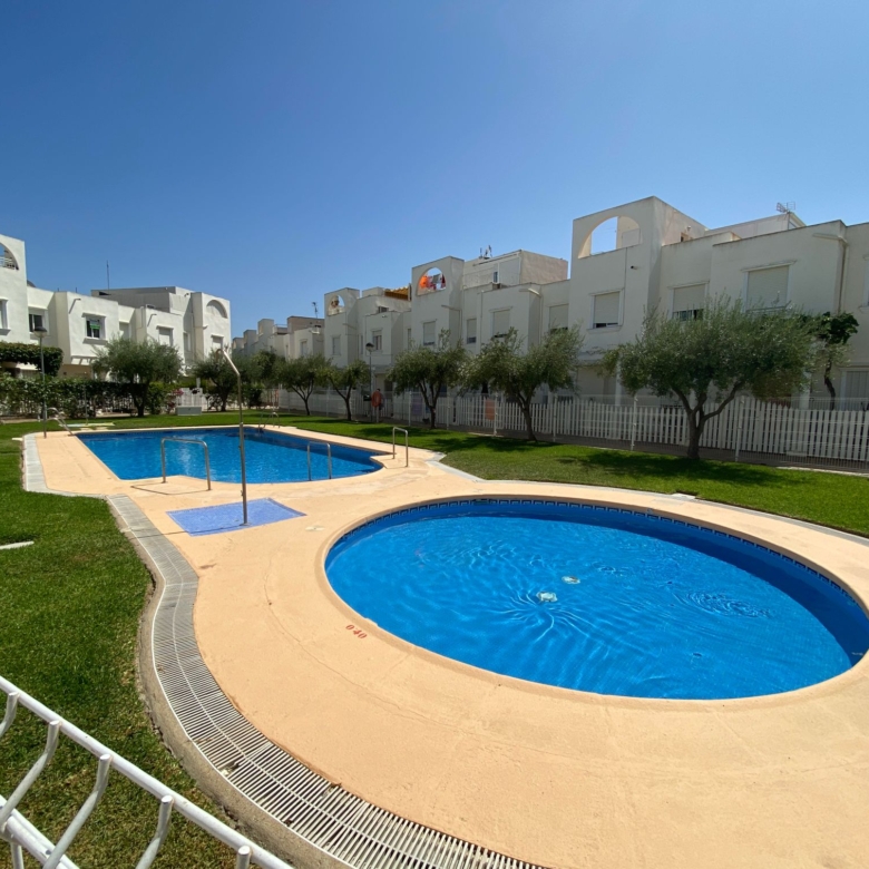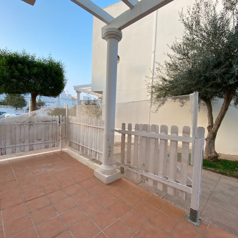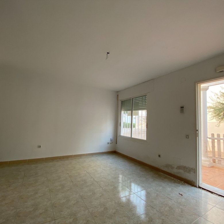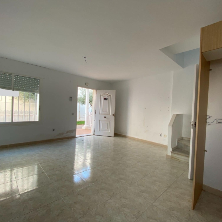 This mid-terrace corner townhouse is located in Fuente Mar, only 500 m from the beach and at walking distance from Garrucha. The ground floor has a large dining-living room with an open-plan kitchen. On the first floor are two double bedrooms and a large bathroom. The house has a very nice terrace (12m2) The property’s extra bright! The urbanization is gated and gives a feeling of a small town, ideal for families with children. There are two outdoor pools, a kiddy pool and very well maintained community gardens. There is plenty of off-street parking just in front of the property. Close by you find bars, restaurants, shops and a supermarket. Fuente Mar is within walking distance from Garrucha, and only a few kilometres away you find Villaricos and Mojacar. 3 golf courses, karting, a sports centre, a water park are all within 10 minutes reach by car. The Mediterranean motorway takes 45 minutes to reach the international airport of Almería. Another motorway is connecting this area with La Manga and the Murcia airport in just 1-hour of driving…