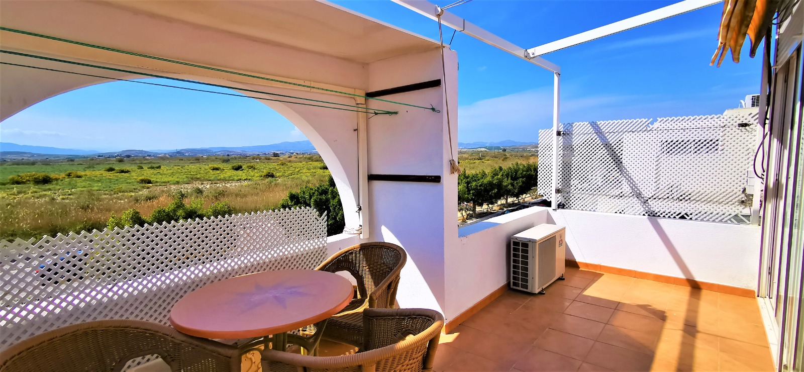 Close by you find bars, restaurants, shops and a supermarket. Fuente Mar is at walking distance from Garrucha, and only a few kilometres away you find Villaricos and Mojacar. 3 golf courses, karting, a sports centre, a waterpark are all within 10 minutes reach by car. The Mediterranean motorway takes 45 minutes to reach the international airport of Almería. Another motorway is connecting this area with La Manga and the Murcia airport in just 1-hour driving…