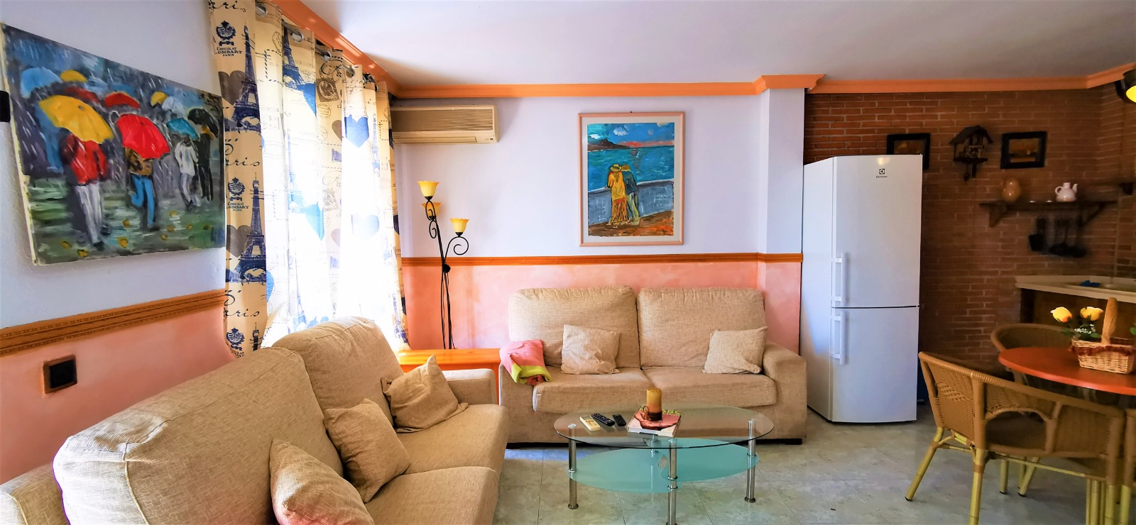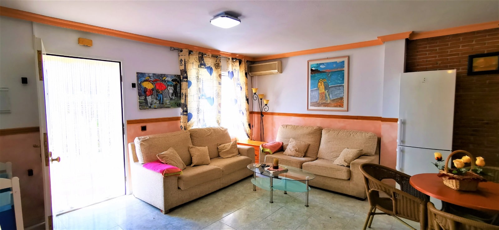 This mid-terrace townhouse is located in Fuente Mar, at only 500 m from the beach and at walking distance from Garrucha. The ground floor has a large dining-living room with an open plan fully fitted kitchen. On the first floor are two double bedrooms and a large bathroom. The house has a very nice terrace (12m2) and a sunroof terrace The property is sold fully furnished and has air conditioning in the lounge. The property´s extra bright! South Facing!
